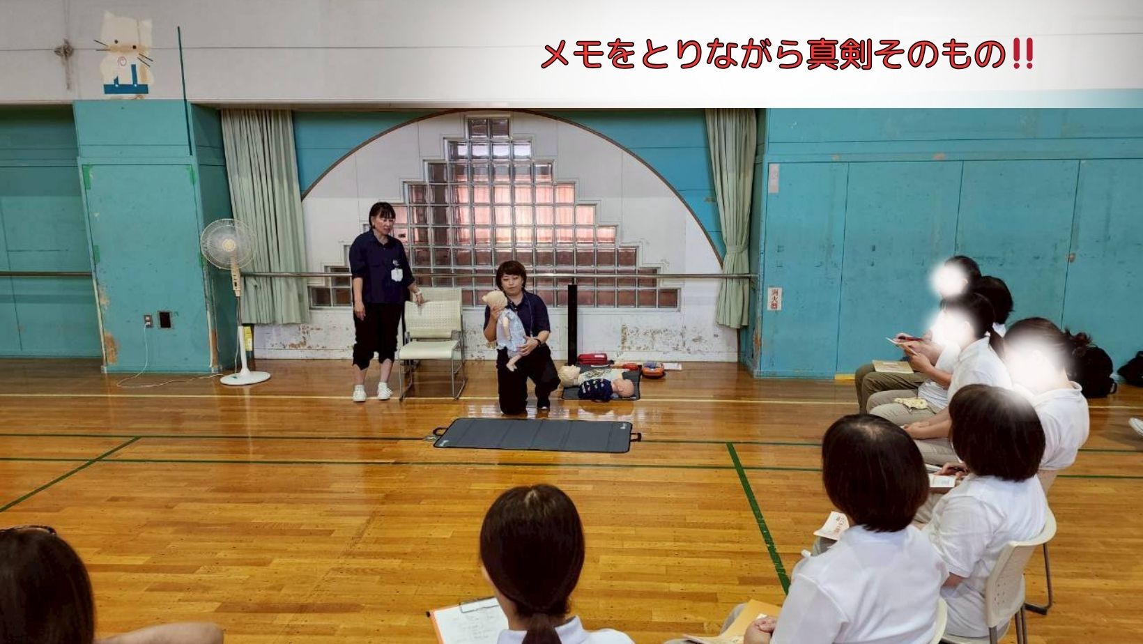 特に、異物除去法の一つの「腹部突き上げ法」は皆さん本当に上手で、誤嚥・窒息が起きた時も安心だなと思ったくらいです。