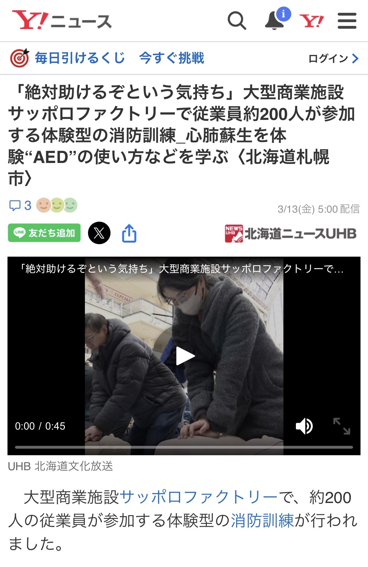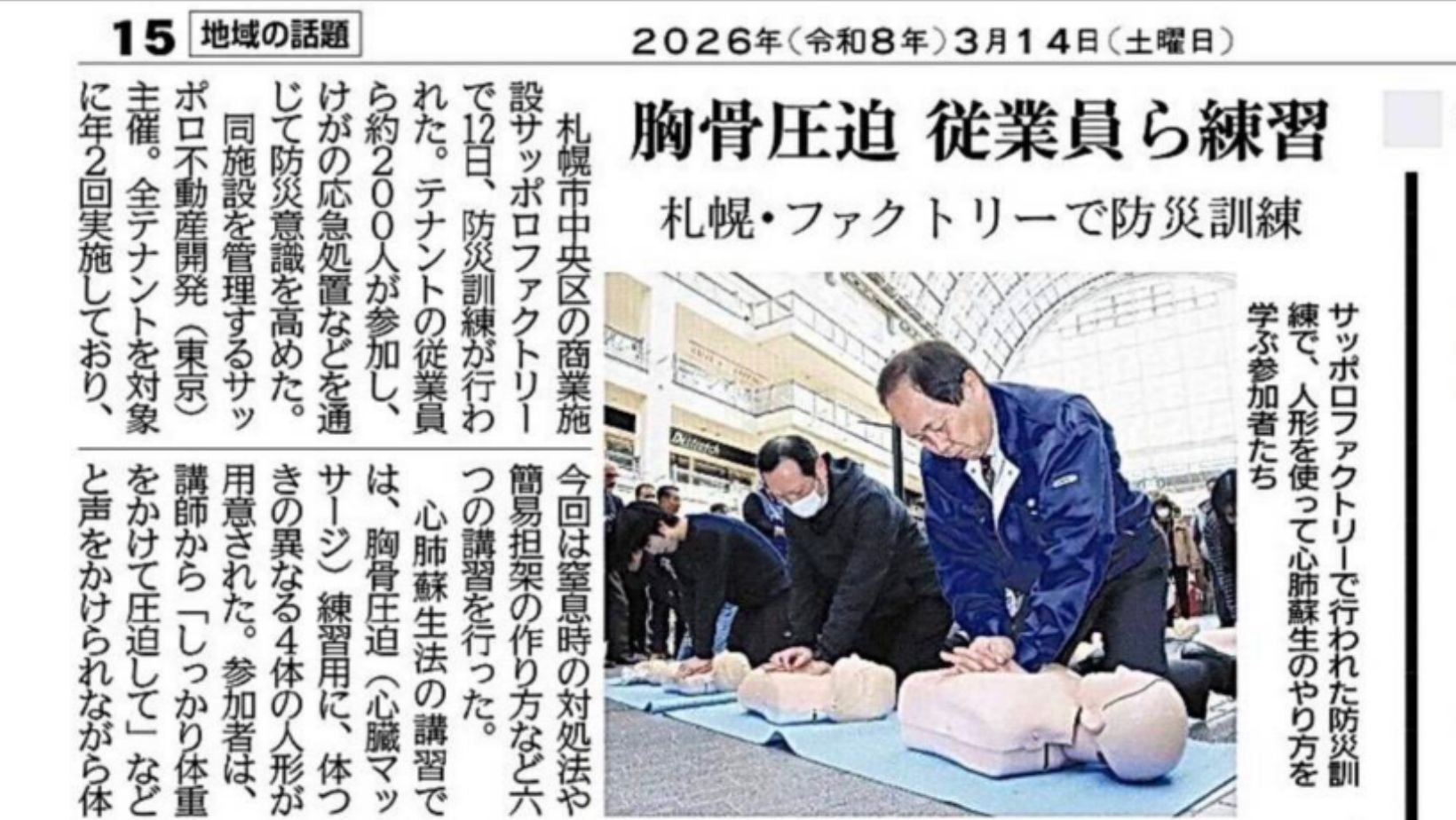 そのご縁から、今回サッポロファクトリーで勤務されるスタッフの皆様向けの社内研修(訓練)で救命講習を担当させていただきました‼️